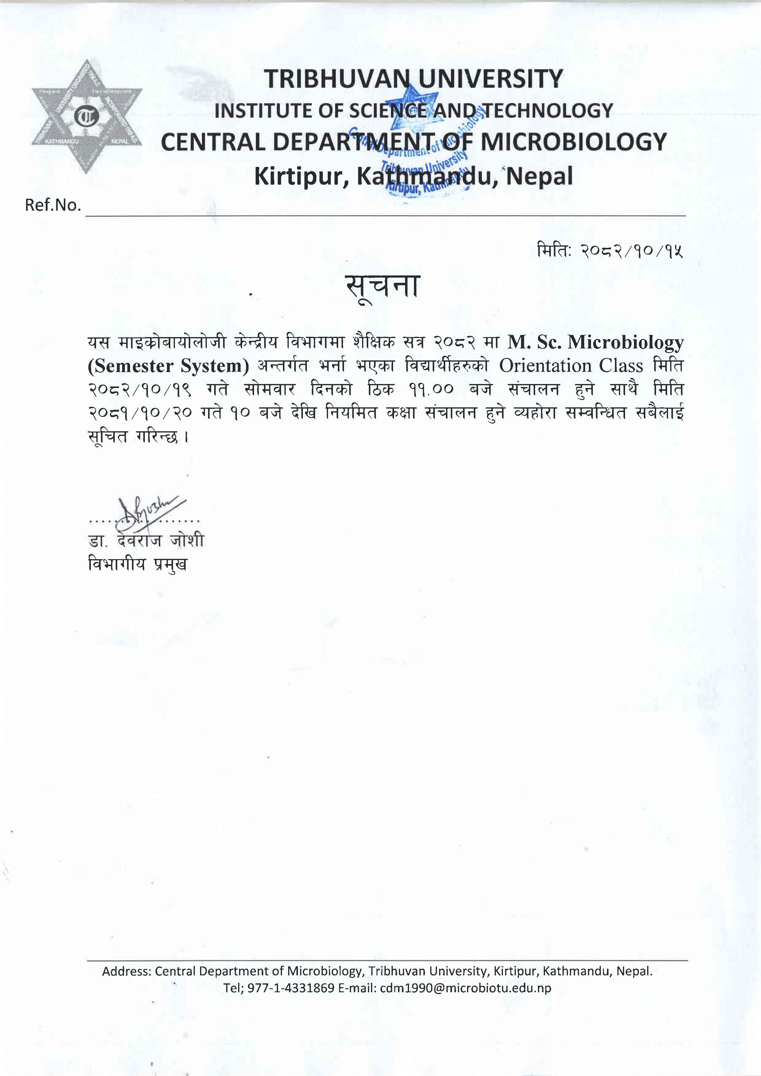 M.Sc. Microbiology 2082/083 First Semester Orientation Program