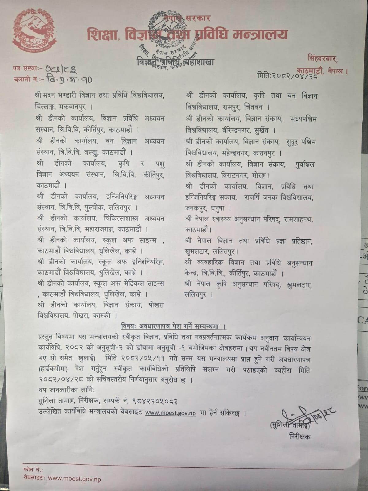Academic Calendar 2082-083 for First Semester